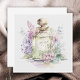 Design features a beautiful watercolor illustration of a green vintage perfume bottle, set off with pink and lavender flowers. Reverse side is blank.