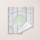 Add an elegant touch to your bath decor with a set of Green Vintage Scallop Shell Bath Towels. Towel design features a vintage scallop shell and custom text for you to personalize with your family name against a wooden background. Additional home decor items available with this design.