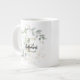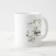 Green w Gold Leaves Monogram Initial 'E' Name Giant Coffee Mug