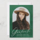 Celebrate your graduate’s achievement with this elegant graduation announcement, featuring a stylish arch frame that highlights their photo against a timeless green watercolor background. "Graduate" is beautifully written in white modern calligraphy, with the graduate’s name, school, and graduation year displayed below for a personal touch. The back of the card showcases a coordinating green watercolor design with space for additional text and photos, perfect for sharing memories and future plans. Ideal for high school and college graduates, this sophisticated announcement makes a lasting impression.