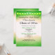 This vertical format high school class reunion invitation design features green watercolor top and bottom borders and lanterns along the top. Personalize your information, remove information or click customize to select a typeface color, size, and style your prefer.