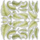 30 Green Watercolor Fern Leaves Contour Cut Stickers in assorted types and sizes. Painted by Lillian Egleston.