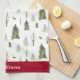 Green Watercolor Pine Trees Patterned Kitchen Towel