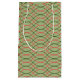 This gift bag has a Boho design of green and orange waves on a field of light green.