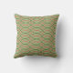 This throw pillow has a Boho design of green and orange waves on a field of light green.
