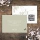 Make responding effortless with this wedding RSVP card, designed for couples who love an elegant, simple response style. Featuring minimalist calligraphy script and classic typography, this card blends timeless charm with modern convenience. The QR code reply card allows guests to RSVP easily through your modern wedding website. Accented with watercolor greenery leaves and stylish foliage leaves, it adds a natural touch. Complete with a personalized bride and groom monogram, it’s a sophisticated, simplistic choice for your big day.
