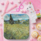 Green Wheat Field with Cypress. Vincent van Gogh. Cute summer landscape. There is a house on a green field. There is a tree growing next to the house. There is tall grass on the field. Clouds are running across the blue sky. Reproduction of famous works of art images in the public domain.