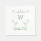 Modern and simple Whimsical Flourish Monogram Wedding Paper Napkins featuring an elegant swirl motif in green. Easy to customize, simply add your initial and wedding details in the text fields provided. Click "Customize It" to find more personalization options.