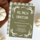 This Green Whimsical Hand Drawn Friendsgiving Dinner Invitation features a warm olive-green background framed by a hand-painted white ribbon bow accents in each corner, giving the design a cozy autumn feel. The bold handwritten-style lettering adds a friendly, heartfelt touch that fits perfectly with the spirit of gratitude and gathering. The backside includes a coordinating olive gingham pattern, adding rustic charm and a classic fall-inspired look. Use it to invite friends to a meaningful Friendsgiving dinner filled with good food, shared stories and genuine appreciation.