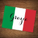 Grazie - Thank you in Italian against the colors of Italy's flag.