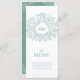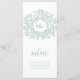 Sage gray green and white wedding dinner menu. Edit this 4 course menu with your own meal option wording. Simple yet modern hand drawn leaves and monogram design. © Original hand botanical drawing and design by Sarah Trett for www.mylittleedenweddings.com exclusively on zazzle.