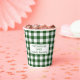 Get ready for a family reunion with paper cups featuring a classic green and white buffalo check pattern with up to 3 lines of text in a white rectangle in the center. Personalize it with your name and text in the sidebar.