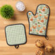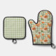 Green White Checker Pattern Orange Pumpkins Oven Mitt & Pot Holder Set