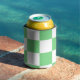 Green White Checkerboard Classic Retro Checks Can Cooler
