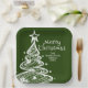Green and White Christmas Tree for a Christmas Party dinner plates with a cute whimsical fun party paper plates for a festive Holiday party.