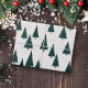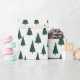 This is a roll of holiday wrapping paper with a cute and modern pattern featuring Christmas trees and small yellow gold stars.