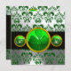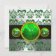 GREEN WHITE DAMASK ,SHAMROCK MONOGRAM,Black Invitation
