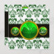 GREEN WHITE DAMASK ,SHAMROCK MONOGRAM Champagne Invitation