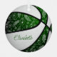 This cute basketball ornament features the realistic image of a basketball that has alternating green and white recolored panels with delicate doodle flowers, feathers and paislies patterned on the basketball's green panels - personalize the athlete's name on the front, commemorative year on the back - by katz_d_zynes