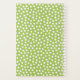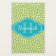 Stylish, trendy light green and white dot pattern in the background, topped with a bright teal blue label featuring a customizable name and monogram template.