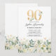 Green & White Floral 90th Birthday Party Invitation