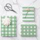 Green White Gingham Dots Striped Matching Wrapping Paper Sheets