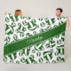This cute volleyball team colors fleece blanket for girls features a pattern of varied size stylized green and white volleyballs turned every which way overlying a volleyball net detail graphic - the volleyballs' green panels are blended with an artsy, girly floral pattern - personalize her name in a sophisticated handwritten font on a bold, angled, full width green color strip - background and name strip colors are customizable - by katz_d_zynes