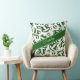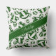 This cute volleyball team colors throw pillow for girls features a pattern of varied size stylized green and white volleyballs turned every which way overlying a volleyball net detail graphic - the volleyballs' green panels are blended with an artsy, girly floral pattern - personalize her name in a sophisticated handwritten font on a bold, angled, full width green color strip - background and name strip colors are customizable - by katz_d_zynes
