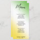 Diagonal ombre green, white and yellow gold gradient wedding reception menu card with black text. Elegant typography for an expensive look at an affordable price. Customize the meal list and personal details. Great for patriotic Jamaican destination themed weddings.