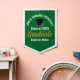 This modern green, white, and gold custom graduation pennant features classy typography of your university or college name for the class of 2025. Customize with your graduating year under the chic handwritten script and black grad cap for great personalized congratulations graduate party keepsake decor.
