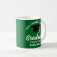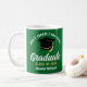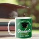 This modern green and white custom senior graduation mug features classy typography of your high school or college name for the class of 2026. Customize with your graduating year under the chic handwritten script and black grad cap for a great personalized graduate keepsake gift.