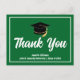 This modern green and white custom graduation thank you card features classy handwritten thanks above your high school or college name for the class of 2025. Customize with your name under the black grad cap for great personalized graduate thank you cards.