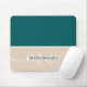 Green & White Minimalist Script Monogram Name Mouse Pad