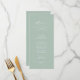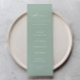 This green white modern calligraphy gold dinner menu card is perfect for a rustic wedding. The simple and stylish design features classic and fancy script typography in a green background.
