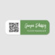 Stylish green and white QR code name tag with the name in a white brush script. Green name tag personalized with a QR code, and the employee's name and title. Let your clients and customers know with whom they're interacting with this green and white QR name tag personalized with name and title.