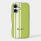 Green White Racing Stripes Serif Name Case-Mate iPhone Case