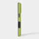 A bright green phone case with white racing stripes on the left side. Plus your name in serif black font. (Or remove the name and make it a pure two-tone racing design.)