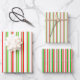 These festive, fun Christmas inspired designs feature red, white, and green colored striped patterns. Festive wrapping paper sheets like these might be fun to use when preparing gifts being given in celebration of Christmas.