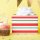 This Christmas-inspired design features a striped pattern having colors like red, white, and green. Wrapping paper like this might be used when preparing presents or gifts being given to celebrate a birthday, a wedding, an anniversary, or some other event.