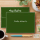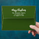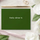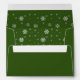Modern simple elegant Christmas design with white winter snowflake pattern on a forest green background and family name with return address to personalize.