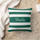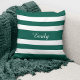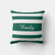 Green & White Stripes Pattern Name Monogram Throw Pillow