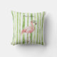 Green White Stripes Pink Flamingo Beach Birthday Throw Pillow
