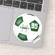 This team colors soccer sticker for girls or boys features a traditional style soccer ball with green and white panels - customize the player's name, monogram and jersey number - by katz_d_zynes