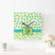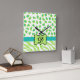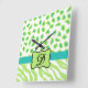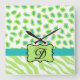 Green White Zebra Leopard Skin Monogram Initial Square Wall Clock