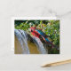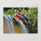 Green-winged macaw (Ara chloroptera) next to a waterfall