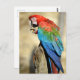 Portrait green-winged Macaw (Ara chloropterus) on perch and eating fruit