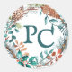 Green Winter Eucalyptus Pinecone Wreath Initials Classic Round Sticker