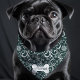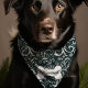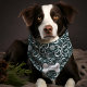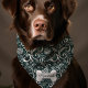 Dress your dog in holiday cheer with this elegant green winter holiday snowflake swirl bandana. Featuring a stunning pattern of white snowflakes and swirls against a rich green background, this bandana adds a touch of festive spirit to your pet's wardrobe. Pets name is beautifully displayed on a bone-shaped accent, making it perfect for any winter celebration. This bandana combines style and comfort, making it ideal for holiday parties, winter walks, and photoshoots. Let your dog shine in this chic and seasonal accessory.