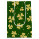 GREEN WITH GOLD GLITTER LOOK SHAMROCKS MEDIUM GIFT BAG