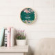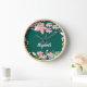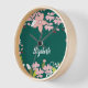 Green with Pink Flowers Personalized Clock